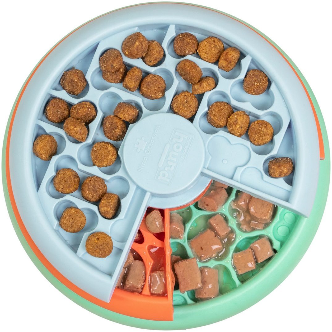 Placez des snacks, des aliments secs ou humides dans les compartiments. Les plateformes rotatives cachent la nourriture et constituent un défi amusant.
