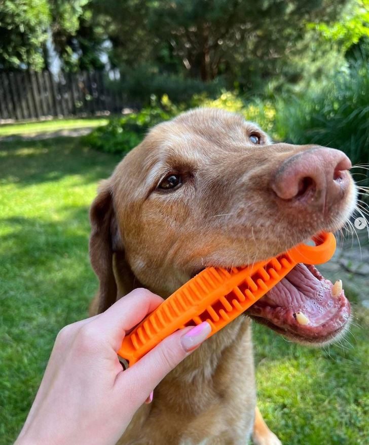 Passer un moment avec votre chien en lui lançant la balle mais aussi une balle pour l’hygiène dentaire grâce aux différents creux qui frottera ces dents.